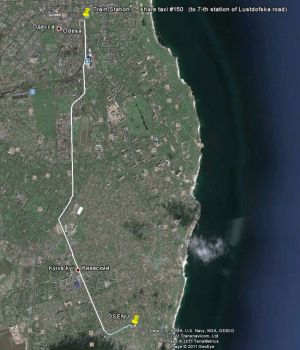 The University is located in 15 Lvivska Street (see Fig. 1, 3). From the railway station (Fig. 2) it's better to go by fixed-route taxis №124, 145, 150 (the fastest way), 221 or by the trams №26, 31 to the stop "The 7th station of Lustdorfs'ka Doroga (Lustdorf Drive)" and by the tram №18 to the stop "The 13th station of Fontans'ka Doroga (Fountain Drive)".
